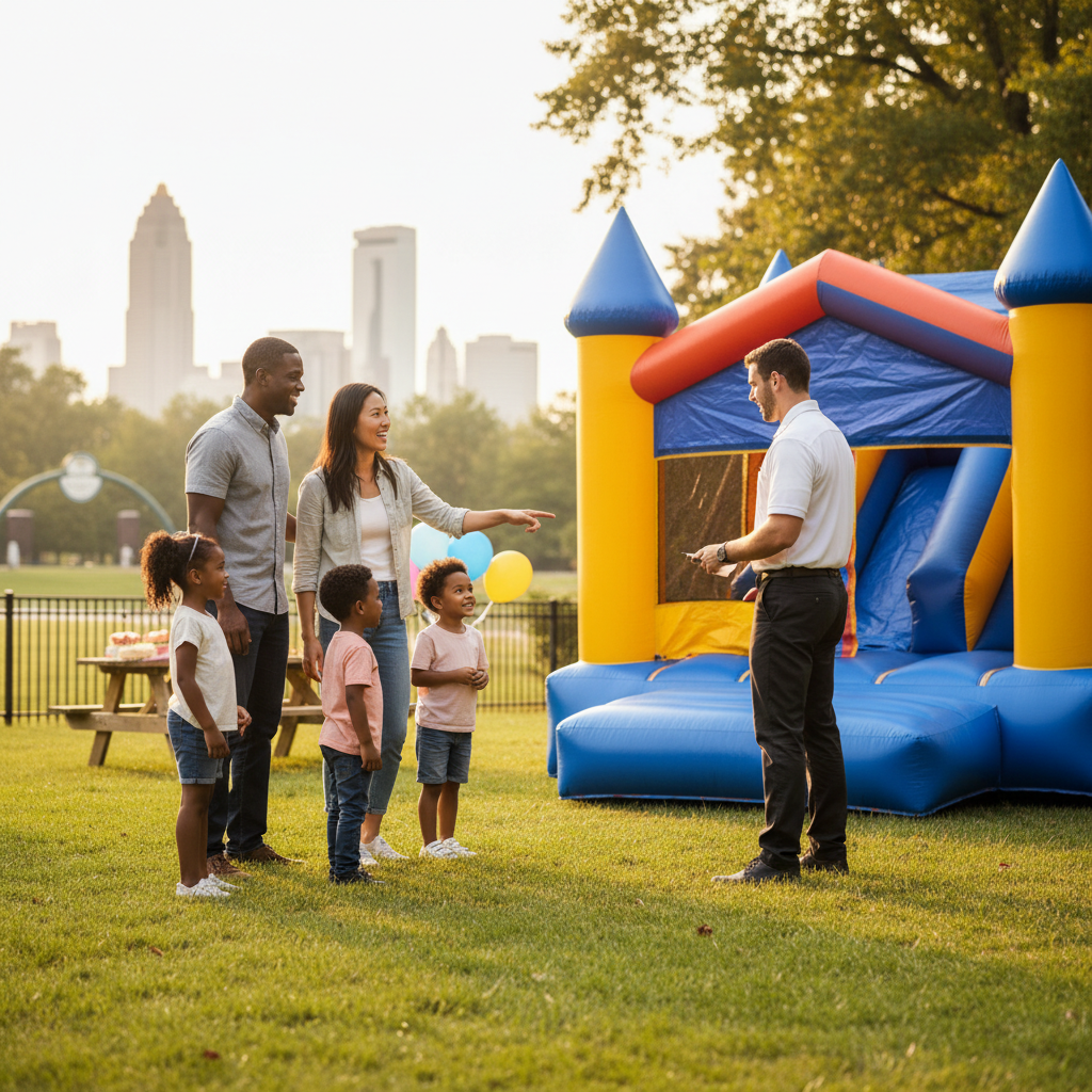 Before renting, familiarize yourself with the specific setup requirements for different Charlotte locations. For instance, McAlpine Creek Park might have different space allowances than your backyard in Myers Park, affecting the type of bounce house you can safely install.